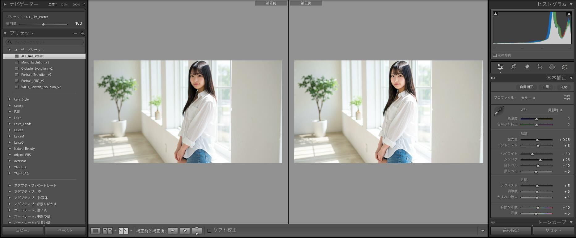 - プリセットの効果はお使いのカメラや撮影環境によって異なる場合があります。