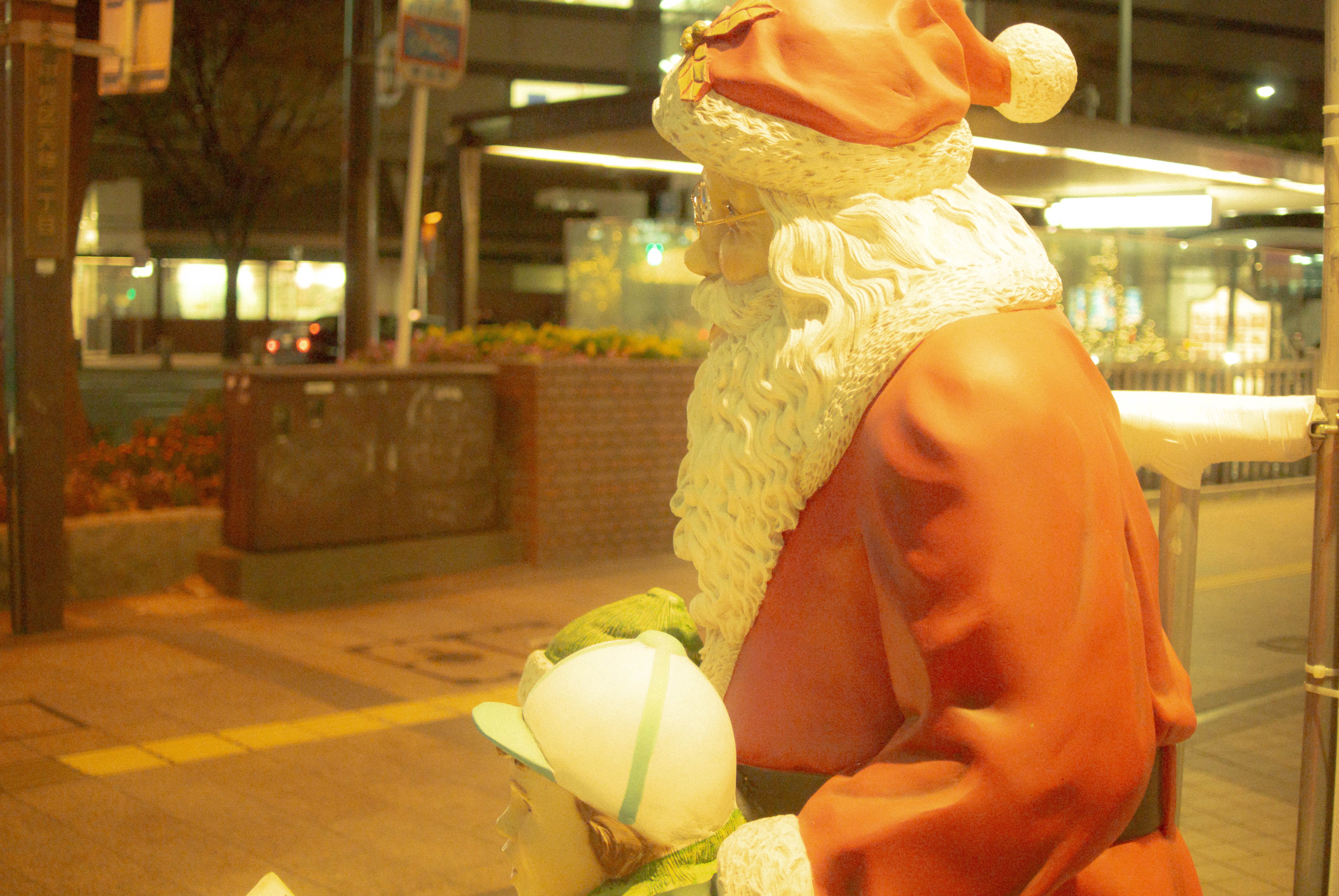 街に出かけて出会うのはサンタの人形?昭和の風景ですね・・・