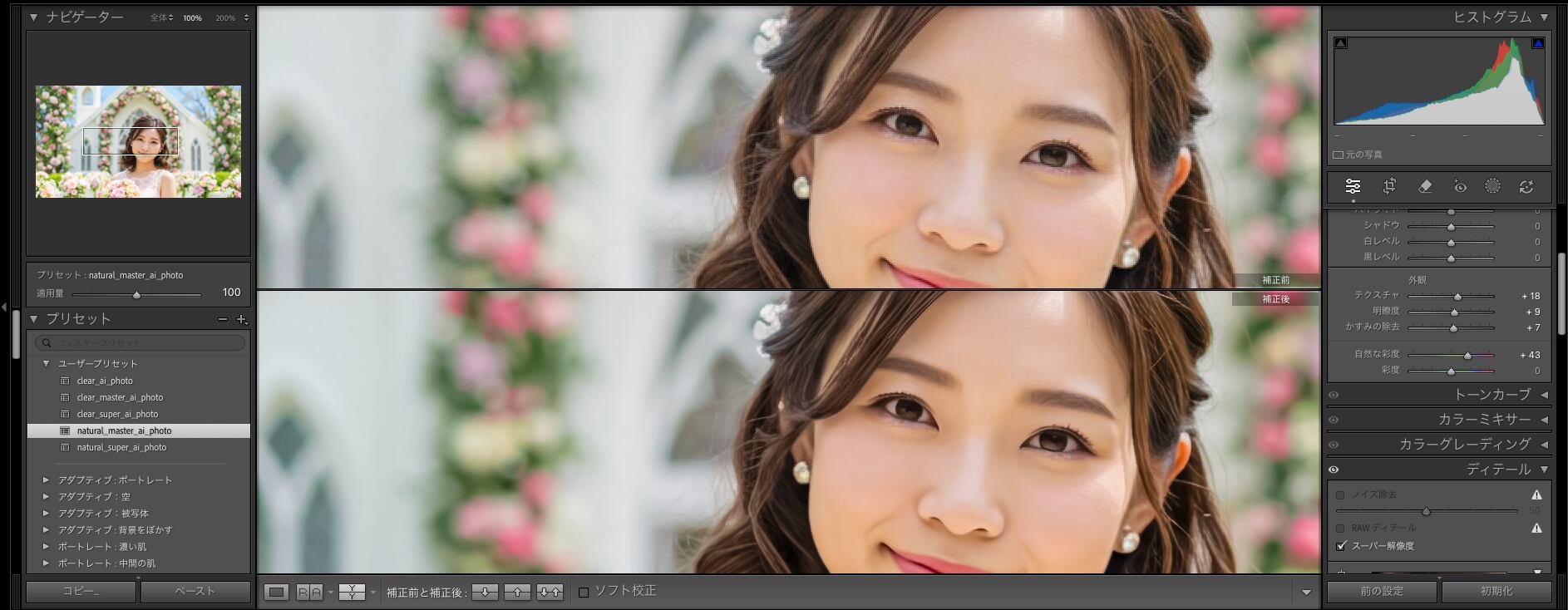 ・「AI仕上げ」専用のLightroomプリセットが含まれています。