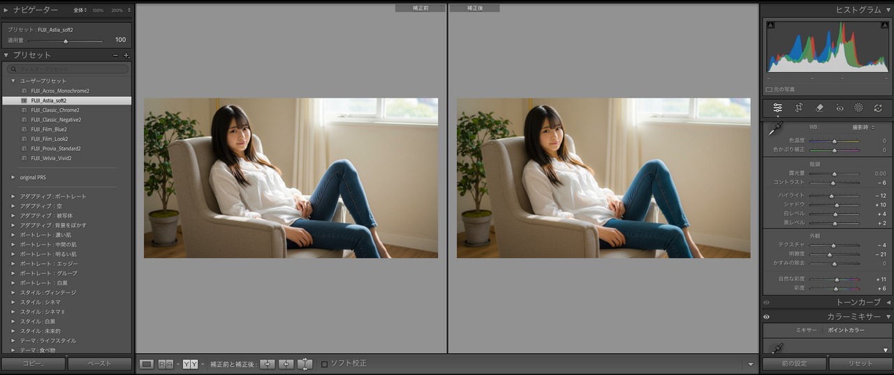 この「FUJIFILM風 Lightroom プリセット」は、特に撮影した瞬間を美しく彩るために設計されており、洗練された印象を与える効果があります。簡単なクリック操作で、あなたの写真に特別な魅力を与えます。
